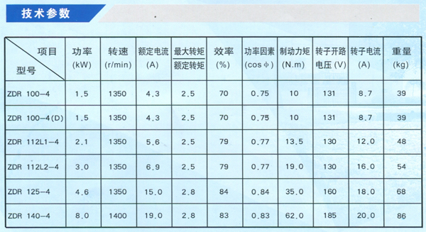 ZDR系列電動機采用380V電源,50Hz,基本工作制為S4,負載持續(xù)率25%,等效起動次數(shù)120次/小時。