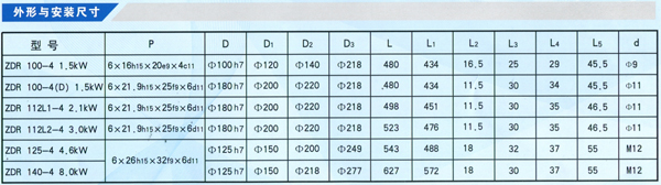ZDR系列電動機為封閉式結(jié)構(gòu),防護等級為IP44,冷卻方式為自冷式IC0141,絕緣等級有B級和F級兩種。